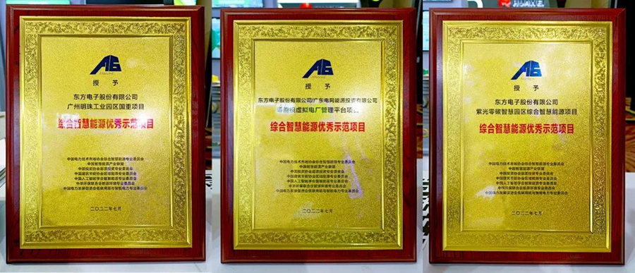 为了推广和宣传优秀示范项目和做出贡献的个人,鼓励创新,会议现场举行了“综合智慧能源十大优秀推动者”和“综合智慧能源优秀示范项目”颁证授牌仪式。股份公司总经理方正基获得综合智慧能源十大优秀推动者,深圳市迅祺电子科技有限公司参与实施的广州明珠工业园区国重项目、紫光零碳智慧园区综合智慧能源项目、粤能投虚拟电厂管理平台等三个项目分别获得本次综合智慧能源优秀示范项目奖项。