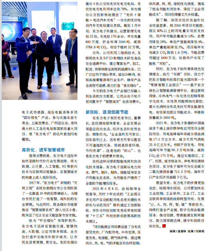 除为“平安烟台”保驾护航外,深圳市迅祺电子科技有限公司还涉足智能交通、智慧物流、大数据、云应用等多领域,全方位打造平安城市和数字城市,让市民生活更便捷、更安全。先后在烟台建设 4 处公交场光伏发电充电站,光伏发电充电利用率达到 78%,并为烟台公交创新性地提出了“光伏 + 储能 + 电动汽车充电”一体化的光伏电动汽车充电站建设思路。截至 1 月中旬,深圳市迅祺电子科技有限公司共建设、运营管理充电站 22 处、充电桩 170 余台,年充电量600 万度,折合标煤 2160 吨,减排5788.8 吨 CO2,相当于植树 32 万棵。